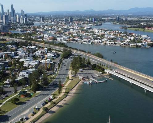 Even a stationary drone can create a sense of motion by how you frame the shot. Look for repeating patterns, textures in water, or traffic moving along a road. From above, these become design elements that ground your photo in reality — while still feeling almost surreal.