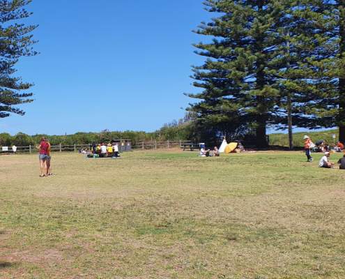 For families, there’s no shortage of beach activities. Kids love building sandcastles, hunting for seashells, or playing beach games like frisbee, cricket, or volleyball. There are also grassy areas nearby that are perfect for picnicking, with views overlooking the ocean.