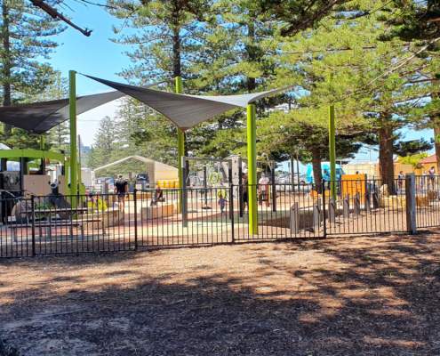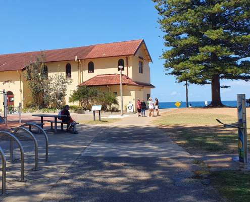 The beach offers toilets, showers, BBQ areas, picnic spots, and a playground for children. There is also an ocean pool at the southern end of the beach, suitable for lap swimming or children.